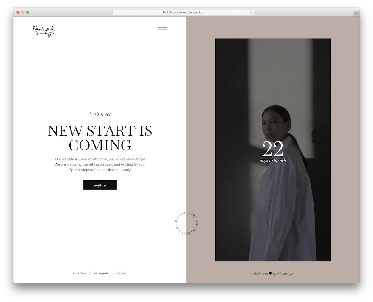 We like playing with the possibilities of coming-soon templates when working on a new website launch or site redesign.