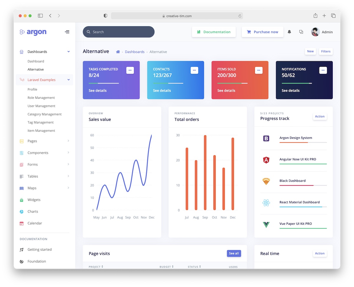 Creative-Tim succeeded with Argon by offering more than other free Laravel templates on the market.